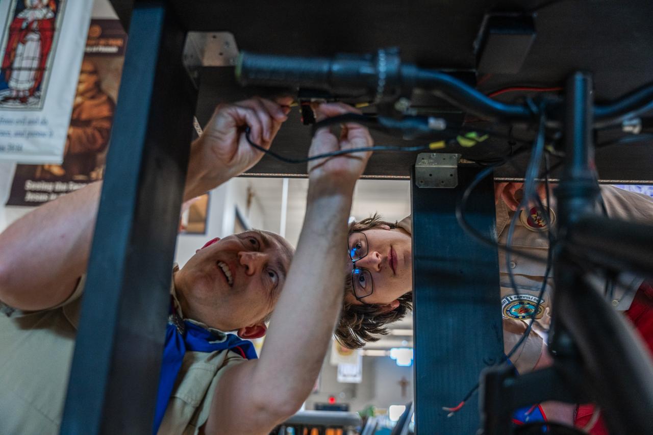 He got the plans, and saw that it was for a work station that would generate it's own power from cycling on connected a stationary bike. It could be used by staff or a guest who wants to charge a device while getting some important exercise in. With some experience in electronics, and the help of his engineer father, Marco knew he could do it.